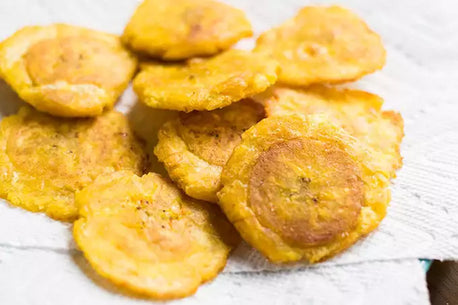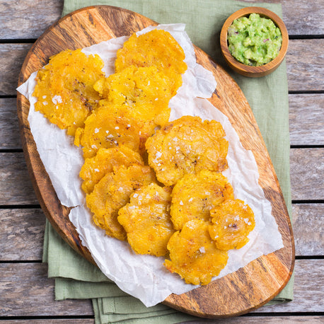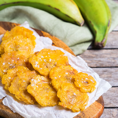 Introducing Tio Jorge Tostones, Patacones or Fried Green Plantains Gluten Free! These delicious, pre-cooked chips are a treat for snacking or could be added to a meal where you might otherwise serve French fries. Enjoy with a sprinkling of sea salt to keep it simple, or dip them into your favourite salsa, guacamole or other dips! Ready to eat and all-natural, Tio Jorge Patacones are the perfect snack to make in minutes; heat on the oven or air fryer! So whether you're looking for a quick snack or a great companion for your main dishes, Tio Jorge Patacones are the perfect solution.